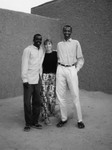 Le lendemain, nous marchons encore dans les ruelles sablonneuses, bordées par les maisons de terre. La vie s'y écoule tranquillement, les gens nous saluent en souriant et les gamins se laissent photographier. Durant la journée, la ville semble morte, puis à 16 heures, l'animation reprend. Nous faisons un tour au Centre Culturel Français et discutons un moment avec le Directeur. Puis nous réservons nos billets de bus pour NIAMEY. Le ciel est gris, comme s'il allait neiger, mais aucun risque ! Avant un autre couscous, nous prenons une bière en compagnie d'un militaire et un pompier.