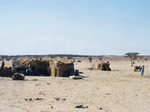 retrouver l'escorte de gendarmerie. A 14 heures 30, seconde halte de 1 heures 30 dans un campement. Il fait trop chaud pour continuer. Nous prenons le thé dans une hutte nomade. A 16 heures, c'est reparti. Les paysages sont changeants. Parfois le sable et parfois des rochers qui donnent un aspect lunaire. A 22 heures 30, nouvel arrêt pour manger. Notre ravitaillement pour ces 3 jours se limite à des boîtes de sardines, du pain, des biscuits et du miel. A minuit dix, on reprend la piste. Maintenant, c'est le sable qui domine. Plus la moindre trace de végétation. Tout est plat à perte de vue. Il fait chaud, la nuit est très longue, sans dormir.