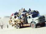 amis. Puis vers 16 heures, ils nous accompagnent à la gare routière. Nous sommes prêts à affronter le vrai désert. Ali et Bokassa nous tiennent compagnie jusqu'à 19 heures. Les passagers s'entassent à l'arrière du camion et nous grimpons dans la cabine. Le départ se précise, on commence à rouler lentement. Et soudain, le chauffeur gare le camion. "Bonne nuit nous dit-il" !!!!! Finalement, on ne part pas ce soir. Et hop, on reprend nos sacs. Aucune heure n'est fixée pour demain. Peut-être le matin, peut-être le soir. Nous rentrons à l'hôtel Agreboun et retournons voir nos copains. Ils rigolent, "c'est l'Afrique !"