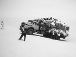 A 10 heures 30, il fait trop chaud, la mécanique souffre. Le sable est tout blanc, les dunes sont loin à l'horizon. Tout le monde se met à l'abri sous les camions. A 16 heures 30, on reprend la piste, lentement. A 19 heures, le soleil se couche, arrêt pour la prière et le repas. Pour changer, sardines, miel, biscuits. L'air est plus frais, on respire mieux, on est bien, allongés sur le sable. A 20 heures 30, ça repart. Et à 1 heures, halte au puit "Achegour", point d'eau en plein désert.