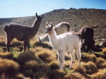 Lever à 5 heures. On entend la pluie tomber. A 6 heures, nous quittons CUSCO un peu à regrets car on appréciait énormément le charme et le passé que la ville dégage. La route est au départ goudronnée puis nous bifurquons pour emprunter une piste en bon état. Tout en montant, on traverse quelques villages dans la montagne. Plus la route monte, plus le brouillard s'épaissit. Une fine couche de neige recouvre le sol. Les flocons se mettent à tomber, il fait froiiiiiid. Nous sommes à plus de 4000 mètres d'altitude. Il est 15 heures 15, le chauffeur demande si on veut s'arrêter pour manger. "No, vamos, vamos, vamos..." crient les gens. Résultat, on s'arrête quand même ! La piste continue, on se retrouve sur un plateau. 17 heures : problème, ça ne roule plus, apparemment, nous sommes en panne ! 17 heures 15, ah, le moteur tourne de nouveau. On roule environ 10 minutes avant de s'arrêter encore. Hop, le chauffeur ressort les outils. 17 heures 31 : on repart, dans la montagne. Le soleil se couche, les couleurs sont magnifiques. A 19 heures 30, nous arrivons à la gare routière d'AREQUIPA. L'hôtel Florida semble chic, donc cher. Pourtant, en disant que des amis étaient déjà venus et avaient payé beaucoup moins cher (c'est pas vrai !), on réussit à avoir la chambre pour 30 soles (60 Francs Français), au lieu de 55 soles. Bonne opération ! C'est le grand luxe : belle salle de bain, T.V. câblée, téléphone... Pour fêter ça, pizza et bouteille de vin.