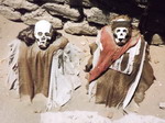 4 places. Un vol de 35 minutes nous permet de contempler les mystérieuses lignes Incas dessinées sur le sol. Une multitude de figures (baleine, triangles, singe, trapèzes, condor, chien...) sont représentées et s'étendent sur des kilomètres, dans le désert. De retour en ville, petit déjeuner. A 10 heures, nous repartons en minibus dans le désert pour visiter un cimetière. Des momies datant de plus de 1000 ans y sont étrangement bien conservées. Elles portent des lambeaux de tissus et leur visage garde des expressions particulières. Nous terminons l'excursion par la visite d'une fabrique d'or, puis une autre de poteries. L'après midi, il fait trop chaud pour sortir. On s'installe devant des boissons fraîches. Le soir, consultation Internet et réservation des billets de bus pour ICA.
