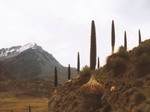 à La Cruz Del Condor. C'est le point le plus intéressant pour admirer l'envol des grands Condor dans le profond Canyon. Pour le repas, retour à CHIVAY. La route remonte ensuite. Nous voici à 4800 mètres d'altitude. On a une vue superbe sur les hauts sommets de plus de 6000 mètres. Le soir, nous sommes de nouveau à AREQUIPA. On retrouve notre hôtel et nos sacs à dos que nous avions laissé ici pour ne pas nous encombrer. On réserve nos billets de bus pour NAZCA, pizza et Pisco Chilceno dans un bar qui domine la place principale.