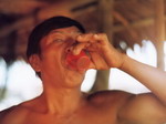 chaleur nous étouffent. A cet endroit, le fleuve est large. De chaque côté, l'épaisse forêt Amazonienne nous encercle. Parfois, nous accostons près des petites maisons pour prendre des chargements. Martin, le travesti, vient souvent nous parler, il nous pose des questions, s'interroge beaucoup sur sa vie. Deux hommes qui font un commerce de Mangues nous prêtent leurs hamacs et nous apportent quelques fruits. Il y a aussi "l'agent de sécurité" du bateau ou encore un propriétaire de Sociétés... Toutes ces personnes si différente avec qui nous discutons nous font part de leurs expériences totalement opposées. Le ciel s'assombrit, rougit et nous offre un magnifique coucher de soleil. Les repas sont inclus dans le prix de la traversée mais la qualité de la nourriture est plus que douteuse. Tout est lavé à l'eau marron du fleuve. On se contente de quelques morceaux de pain.