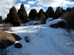 hauts rochers abrupts. Le chemin est parfois verglacé. Nous continuons à monter mais il devient de plus en plus difficile de marcher sur la glace. Ca gliiiiiiisse ! Nous devons faire demi tour, en nous laissant glisser sur les fesses ! Eh, c'est amusant ! Nous récupérons la voiture et allons faire un tour au centre ville de Boulder. La rue piétonne est bordée de chics boutiques et cafés, les gens sont bien habillés.