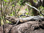 petits arbres colorés et au loin, des collines parsemées d'arbres. De temps en temps, des chemins nous mènent vers d'autres geysers. Tiens, un iguane se relaxe sur une pierre ! Le sentier replonge ensuite dans la forêt. Un nouveau chemin long de 5 kilomètres, plus accidenté qui monte et descend nous mène vers une cascade. Des clairières permettent des vues superbes sur les collines lointaines… Nous rencontrons d'autres iguanes, des fourmis travailleuses, des tapirs et même un petit serpent coloré. Après 1 heures 45 de marche, nous arrivons au pied de la cascade. Nous apprécions un moment ce lieu frais et verdoyant, puis repartons par le même sentier… A l'entrée du parc, nous retrouvons le véhicule et retournons à Liberia.