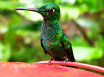 L'étroit chemin monte, redescend, on ne croise personne… Parfois, des colibris virevoltent dans les arbres. L'humidité est pesante, on transpire… Puis on rejoint un autre sentier plus praticable. La forêt est toujours aussi dense. Nous parcourons un peu plus de trois kilomètres et nous retrouvons de nouveau à l'entrée du parc. En fin de matinée, nous reprenons le minibus pour Santa Elena. Nous devons encore faire du lavage et prenons une bonne douche…
