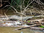 verts, dégagés, avec de grandes plantations de bananes. A 10 heures 45, nous sommes à Cariari et achetons nos billets de bus et bateau pour la suite du voyage. Nous repartons à midi. La route se transforme vite en un chemin caillouteux, qui longe toujours de grandes plantations. A 13 heures 20, le bus nous dépose à la Pavona, près d'un embarcadère. Là, nous embarquons à bord d'un bateau à moteur avec quelques touristes. Nous naviguons le long de canaux bordés par la forêt. Nous rencontrons des singes et des crocodiles. C'est beau ! Puis la rivière s'élargit. A 15 heures, nous accostons à Tortuguero. Nous sommes conduits à l'hôtel La Casona où nous prenons une chambre. Ici, pas de rues mais juste un chemin principal. D'un côté il y a la mer et de l'autre la rivière. L'ambiance est très relaxante, Caribéenne. Nous allons réserver une balade en canoë pour le lendemain matin, ainsi que notre trajet en bateau pour Moin le jour suivant. Le soir, un gros crabe arpente le chemin et une multitude de grenouilles barbotent. Pour le dîner, nous mangeons du poulet, surveillés de très près par un chien attendrissant.